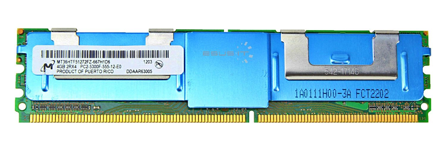 - Zestaw pamięci RAM 4GB składający się z 1x 4GB PC2-5300 DDR2 667MHz 1.8 V ECC FULLY BUFFERED DIMM | MT36HTF51272FZ-667