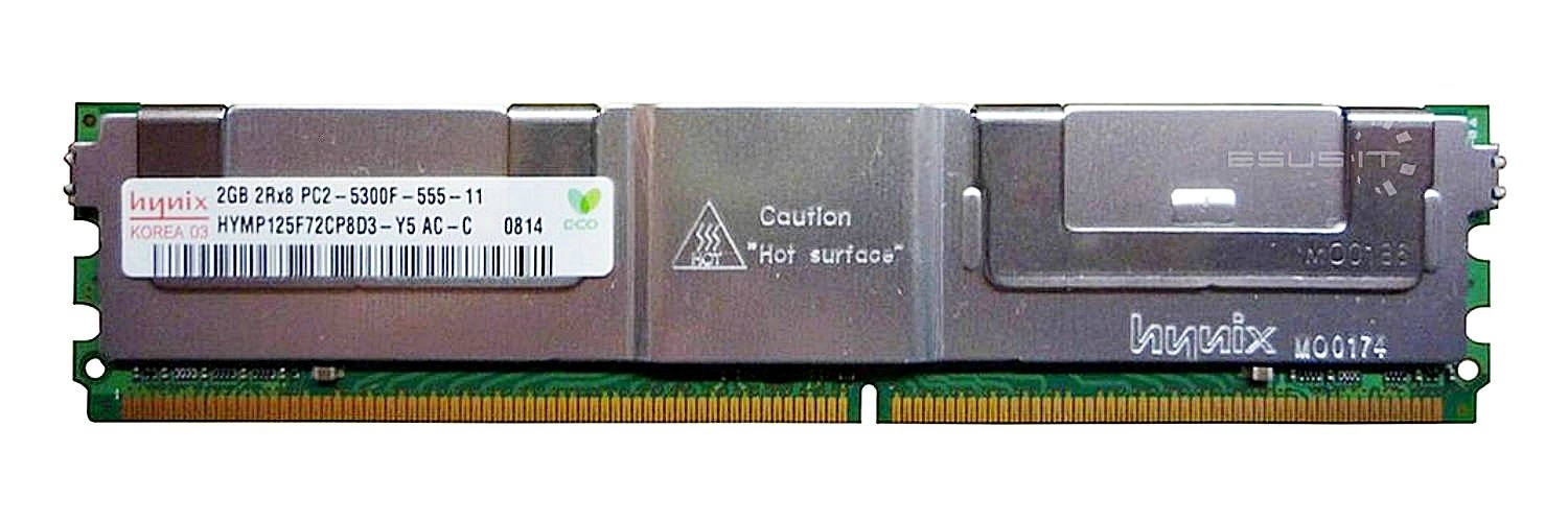 - Zestaw pamięci RAM 2GB składający się z 1x 2GB PC2-5300 DDR2 667MHz 1.8 V ECC FULLY BUFFERED DIMM | HYMP125F72CP8D3-Y5