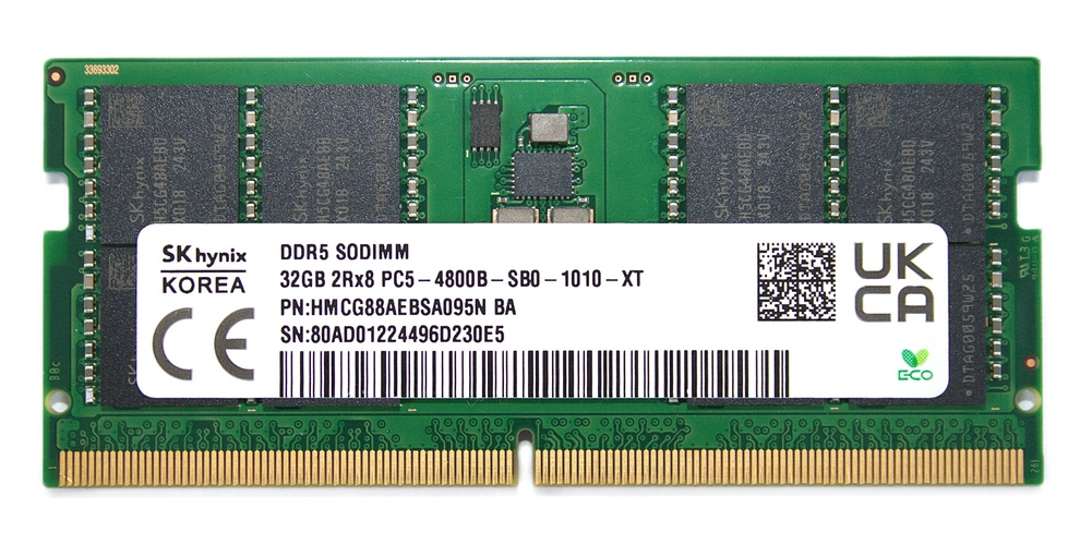 - 32GB Speicher-KIT besteht aus 1x 32 GB Hynix SO-DIMM DDR5 4800MHz PC5-38400 | HMCG88AEBSA095N