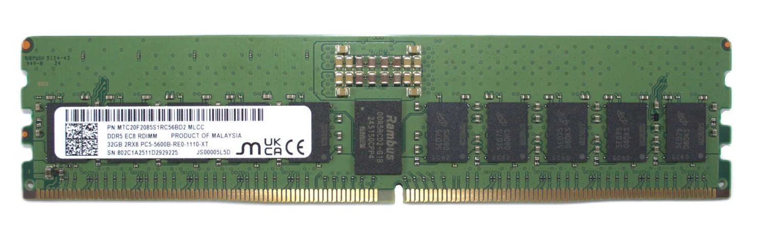 • 32GB Speicher-KIT besteht ausz 1x 32GB 2Rx8 PC5-44800 DDR5 5600MHz 1.1V ECC REGISTERED | MTC20F2085S1RC56BD2