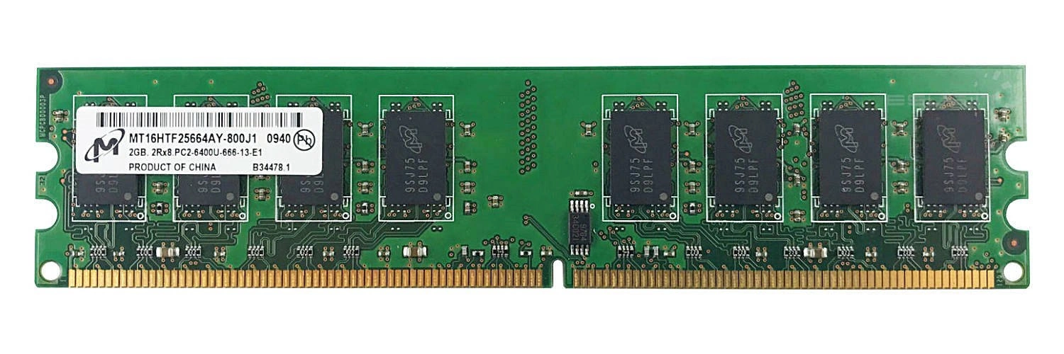 - 2 GB Speicher-KIT besteht aus 1x 2GB PC2-6400 DDR2 800MHz NON-ECC UNBUFFERED DIMM | MT16HTF25664AY-800