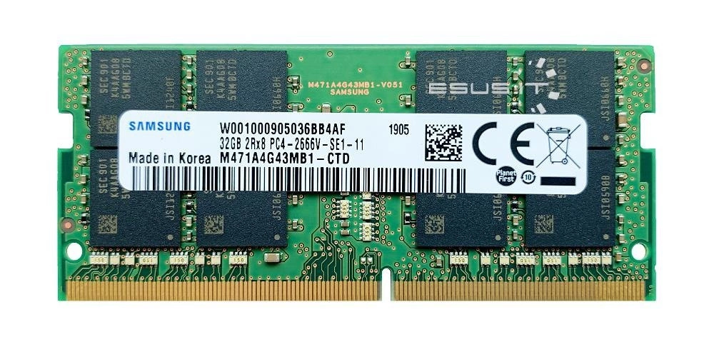 • 32 GB Speicher-KIT besteht aus 1x 32GB Samsung SO-DIMM DDR4 2666MHZ PC4-21300 | M471A4G43MB1-CTD