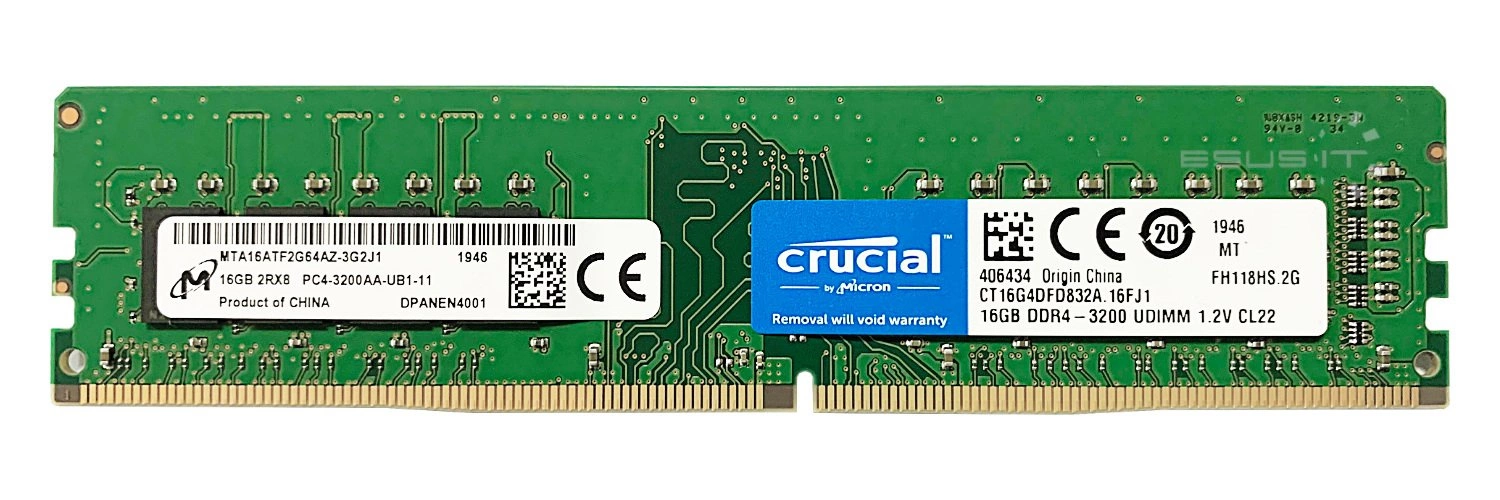 - 16 GB Speicher-KIT besteht aus 1x 16GB PC4-25600 DDR4 3200MHz NON-ECC UNBUFFERED DIMM | MTA16ATF2G64AZ-3G2