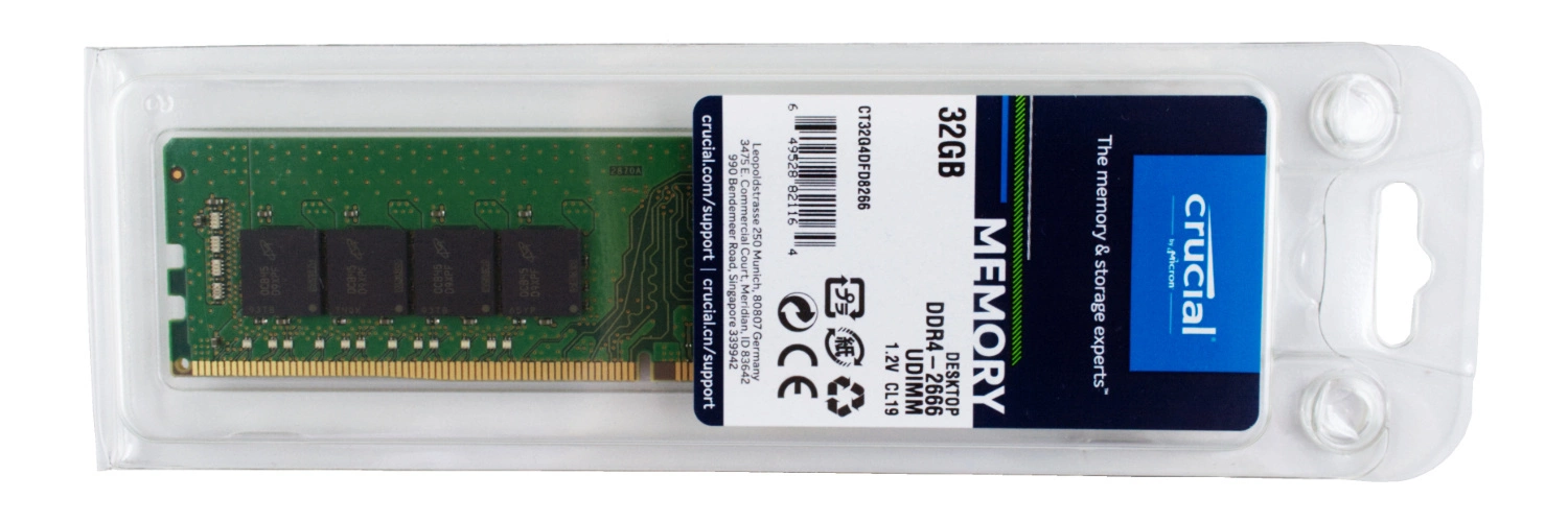 - 32 GB Speicher-KIT besteht aus 1x 32GB PC4-21300 DDR4 2666MHZ NON-ECC UNBUFFERED DIMM | CT32G4DFD8266