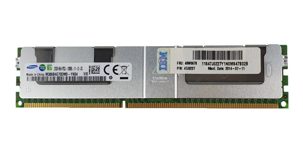 • 32GB Speicher-KIT besteht aus 1x 32GB 4Rx4 PC3-12800 DDR3 1600MHz 1.35 V / 1.5V ECC LOAD REDUCED DIMM | M386B4G70DM0-YK0