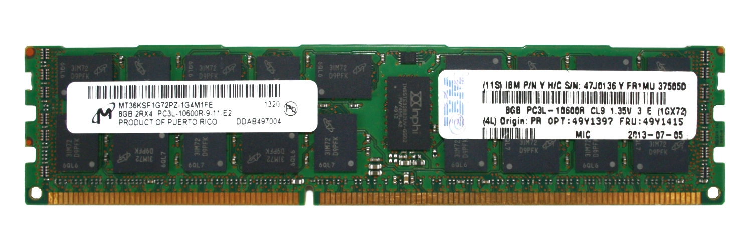 - 8GB Speicher-KIT besteht ausz 1x 8GB PC3-10600 DDR3 1333MHz 1.35 V / 1.5V ECC REGISTERED | MT36KSF1G72PZ-1G4