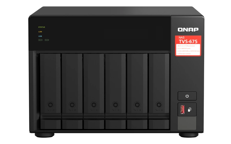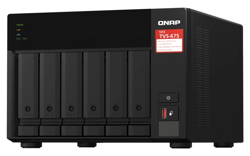• NAS-Server QNAP TVS-675 | CPU: ZhaoXin KX-U6580 RAM: 8GB | 2x 2.5GB RJ-45, 2x USB 3.2 Gen 1 | Garantie 3 Jahre