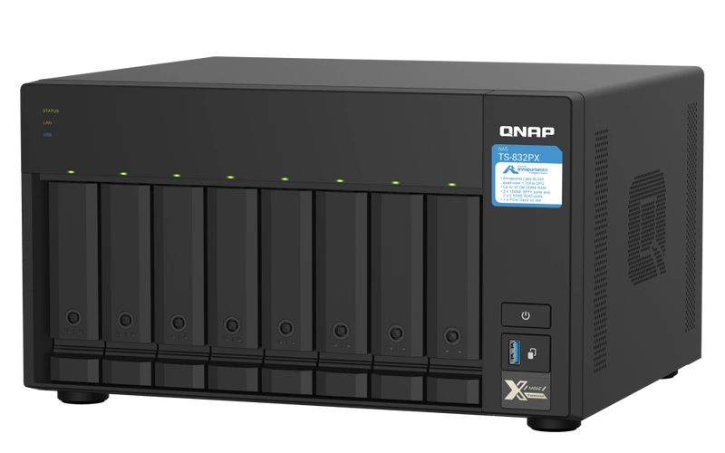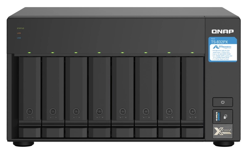 - NAS-Server QNAP TS-832PX | CPU: AnnapurnaLabs Alpine AL324 RAM: 4GB | 2x 2.5GB RJ-45 2x SFP+, 3x USB 3.2 Gen 1 | Garantie 3 Jahre