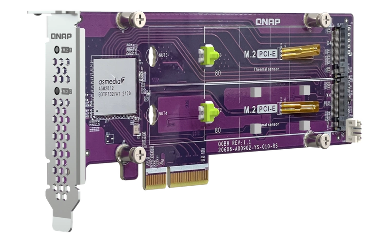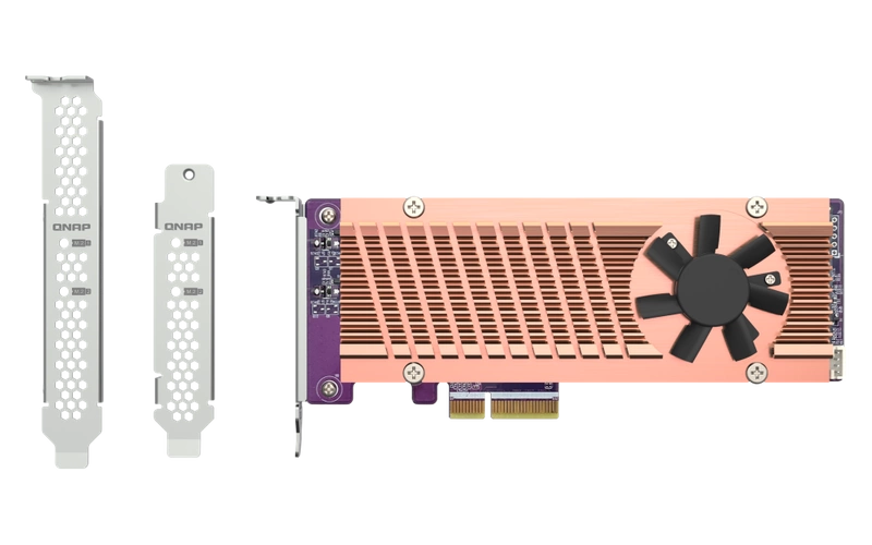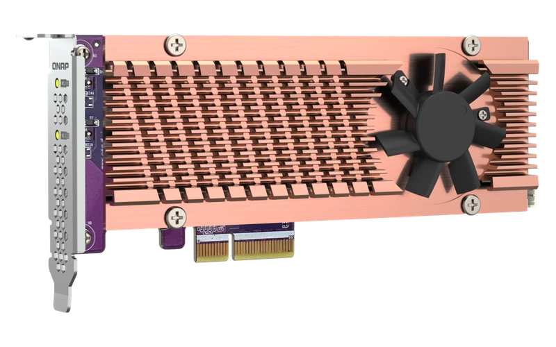 - Fügen Sie Ihrem QNAP NAS mit dem QM2-2P-384A NVMe-SSDs hinzu, um Speicherkapazität und Leistung zu erhöhen.