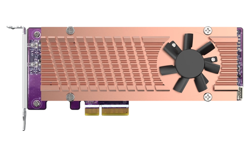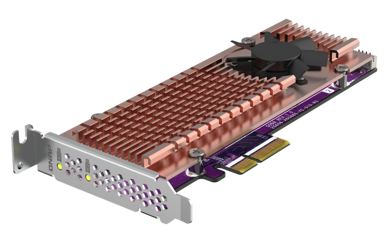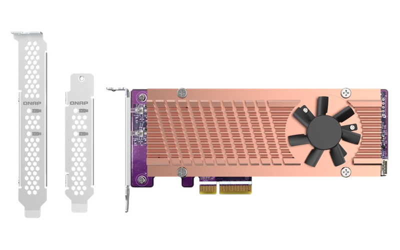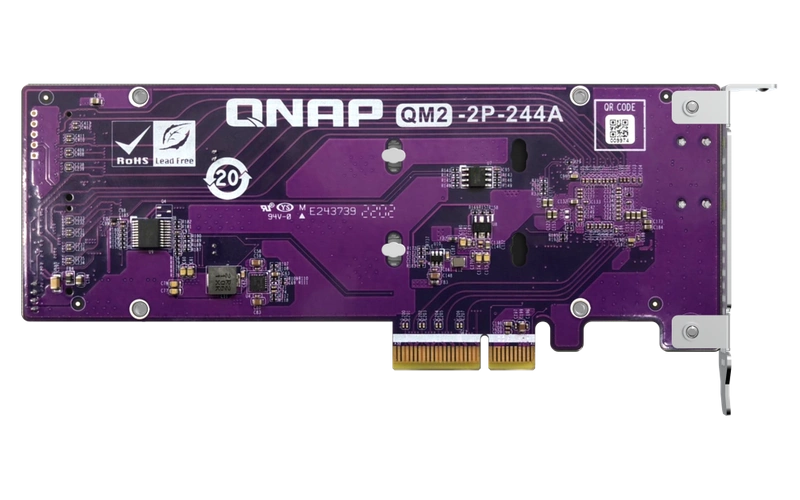 - Fügen Sie Ihrem QNAP NAS mit dem QM2-2P-244A NVMe-SSDs hinzu, um Speicherkapazität und Leistung zu erhöhen.