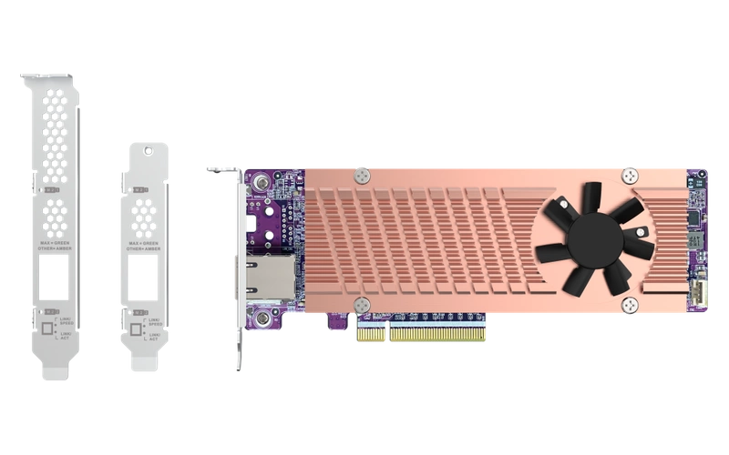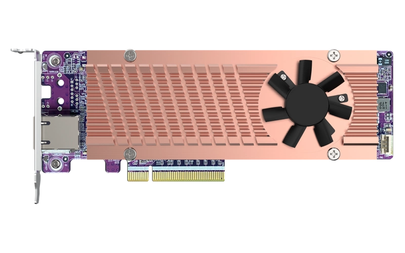 - PCIe Gen4 Erweiterungskarte 2 M.2 NVMe SSD Steckplätze und 1 10GbE Port